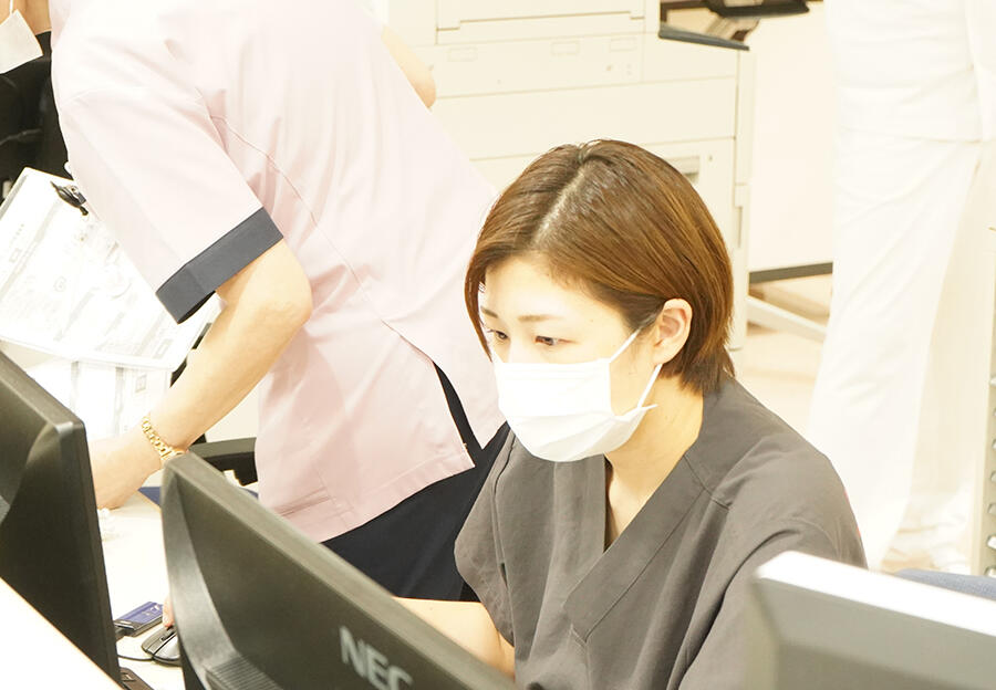 私にとっての仕事のやりがいは、自分が治療した患者が笑顔で退院する姿を見ることです。学生時代と比べ、内科でも外科でも患者の治療に責任を持って携わっており、時には検査や治療などを提案したり、指導医のもと手術を行ったりしています。そのように主体的に関わってきた患者が退院するときは、とても感慨深いです。好生館は、研修医が診療チームの一員として働ける環境が整っており、やりがいを多く感じることができると思います。